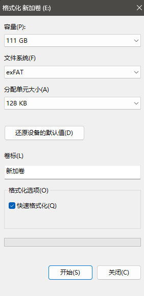 1、格式化移动硬盘,按图中设置,格式化为exFAT。