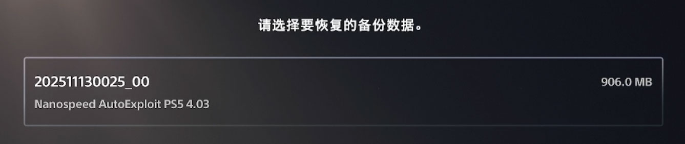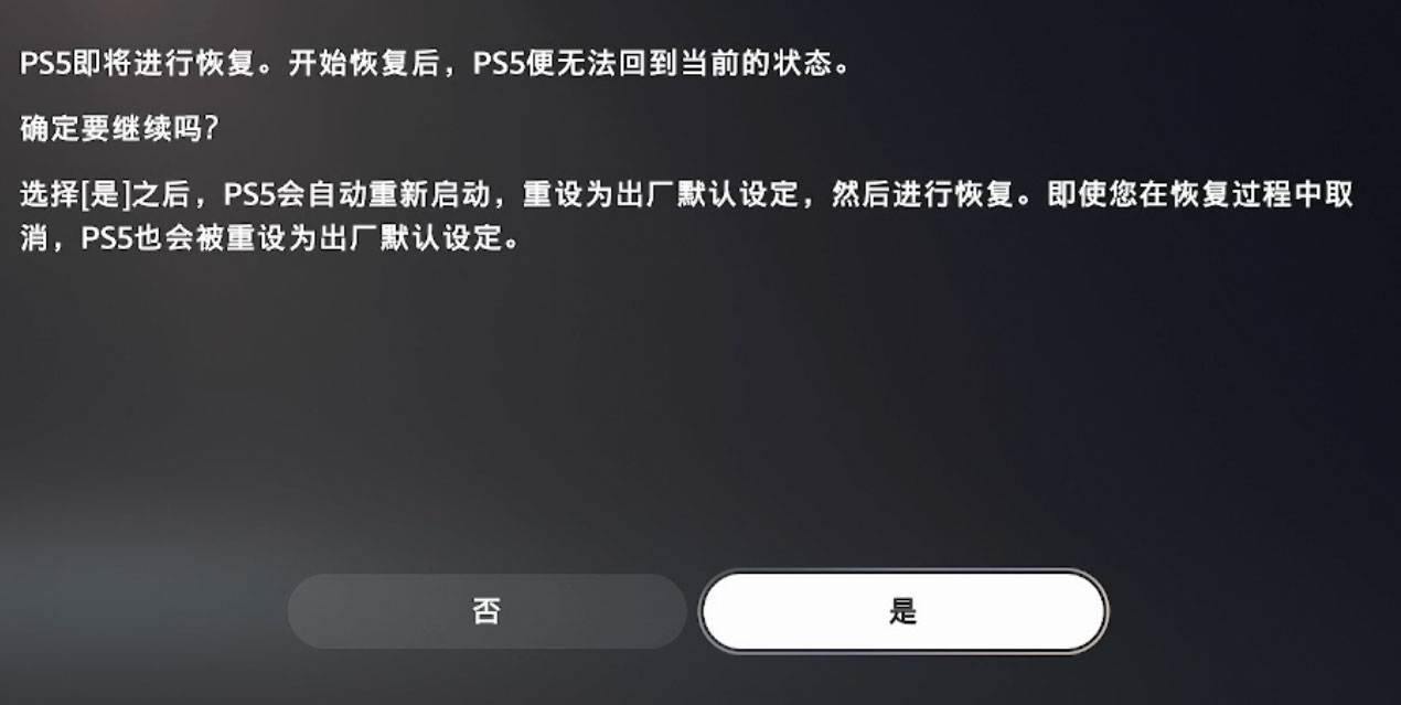 注意:恢复备份会将你的 PS5 恢复出厂设置(FACTORY RESET)你的存档和所有内容都会消失,站内有导出教程。