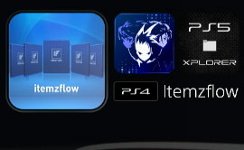 2、PS5找到Itemzflow这个程序运行。(1.2.1的备份恢复,只有YuTuBe,首页PS5工具,下载Itemzflow最新版,PS4的PKG方式安装)